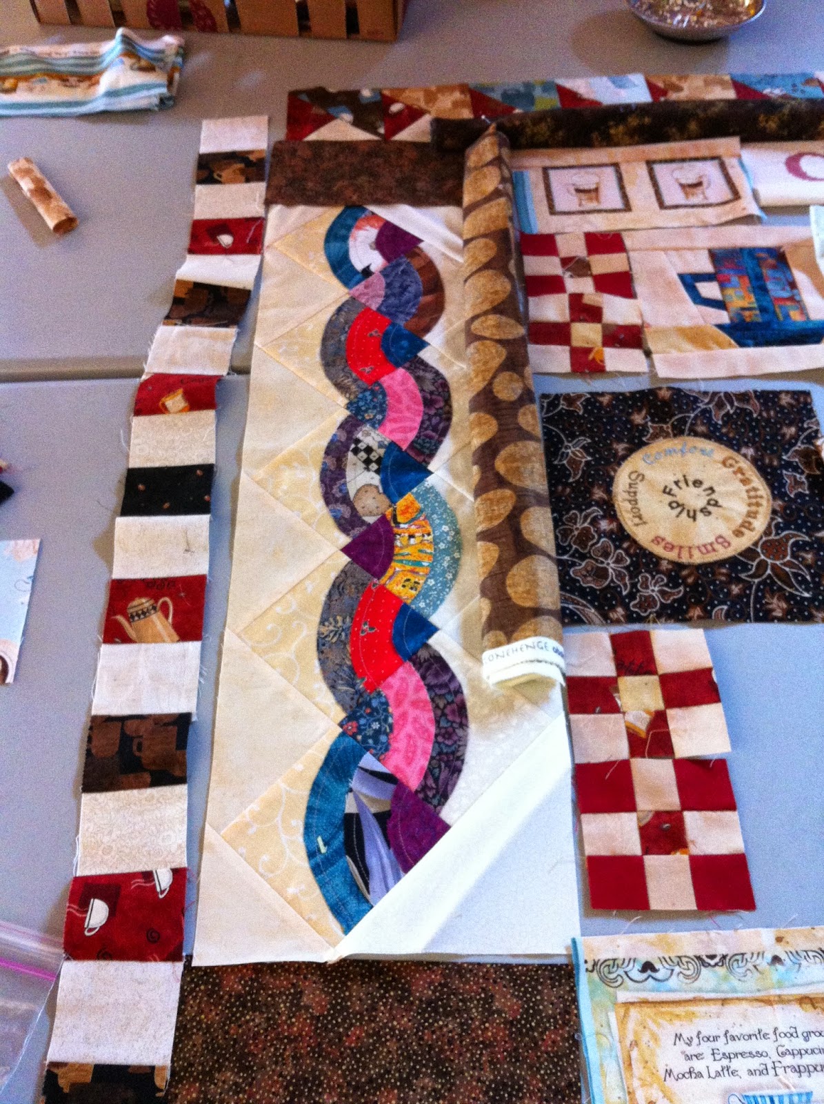 This little wall hanging has been sitting on the shelf for a number of years and deserves to be finished. It just needs to be quilted and bound. I'm calling it Three Gals On The Beach.